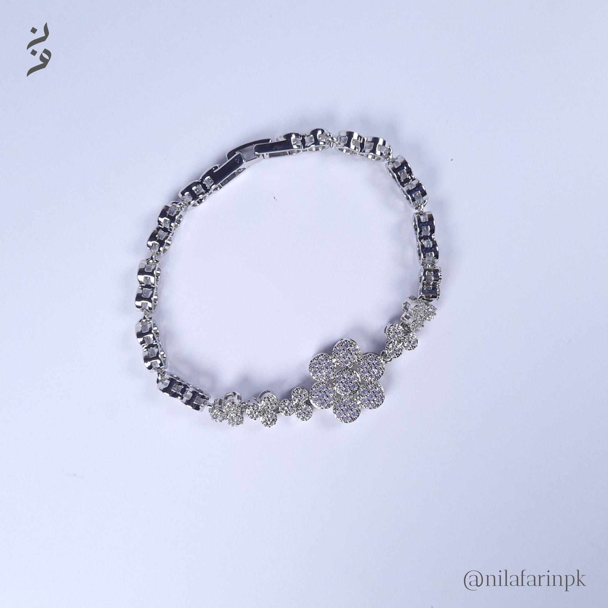 Luxury Silver-Toned Pave Flower Statement Link Bracelet
